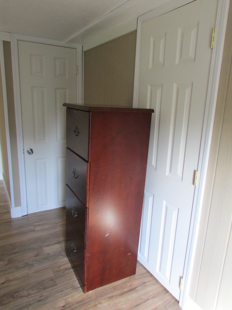 Closet doors have been installed (don’t mind the cabinet that does not belong there). We painted the doors nutmeg.