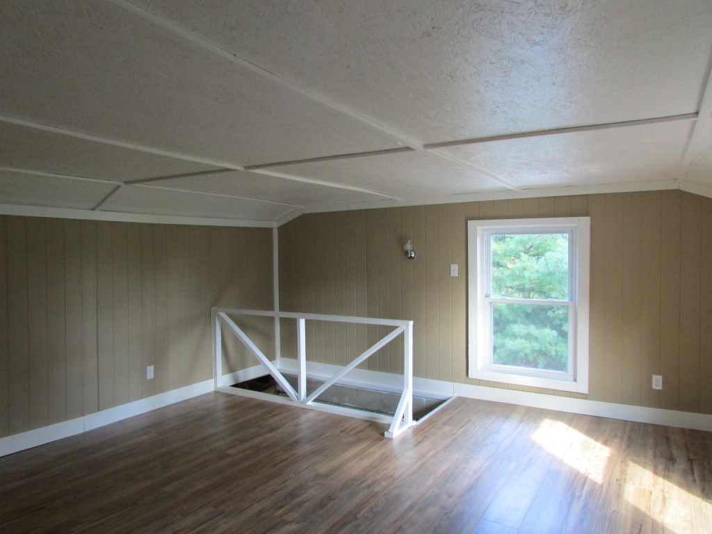 The other side of the room, where the bed would be located. There were areas on the floor that were painted brown and other square areas were left in the natural wood. I could not figure out why.