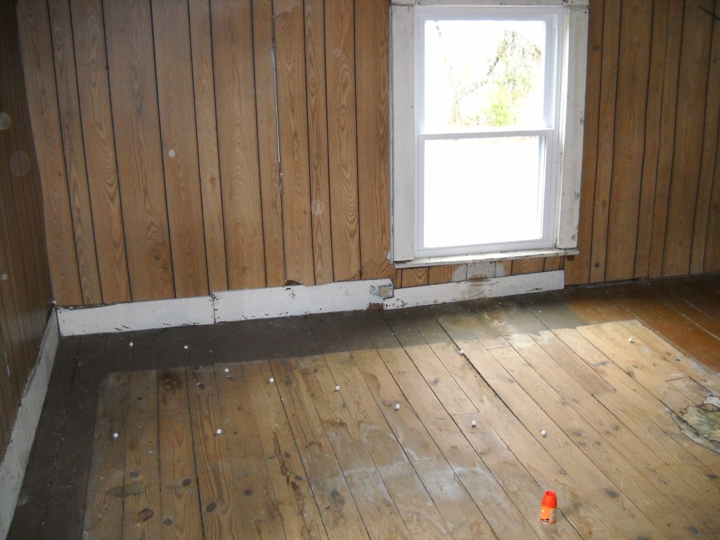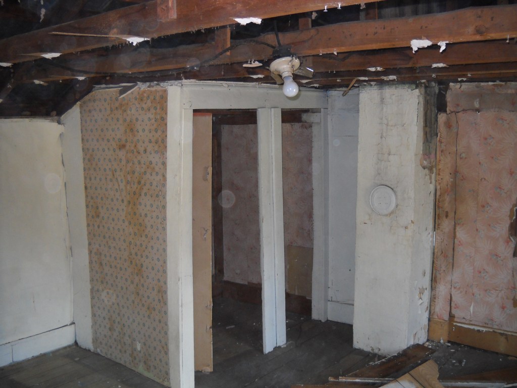 Here you can see the mismatched materials, various layers of wall paper paint, and condition of the walls as well as the floor.