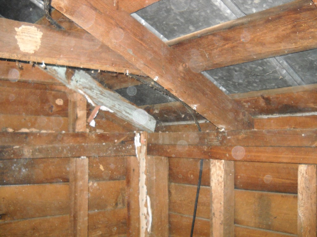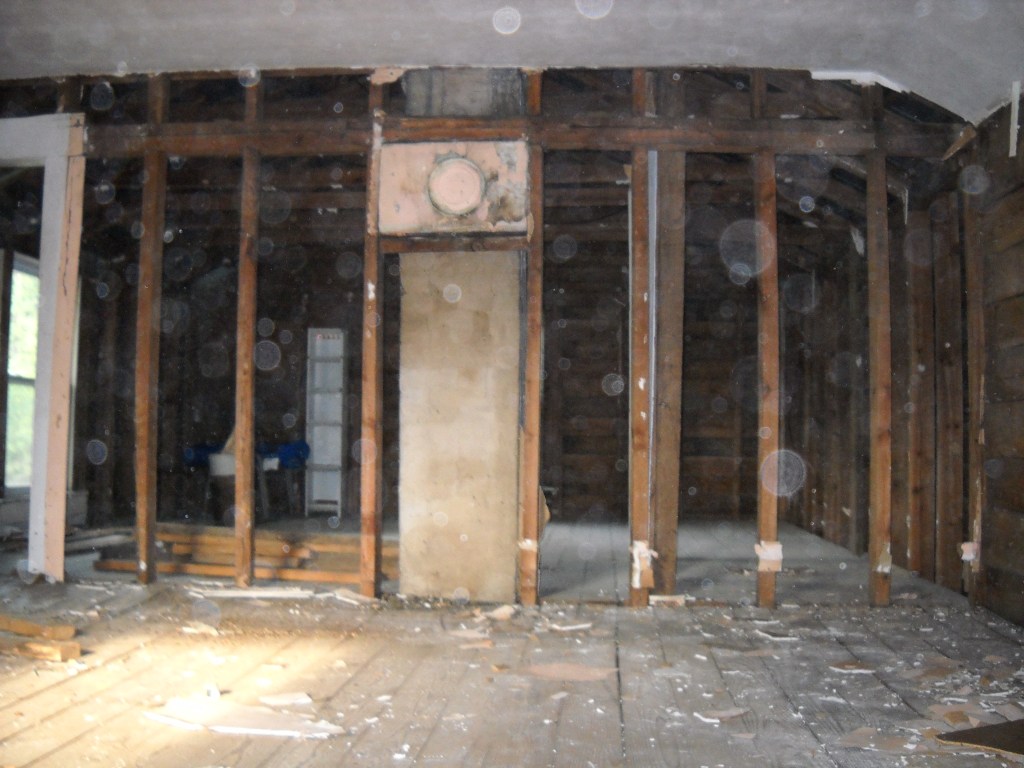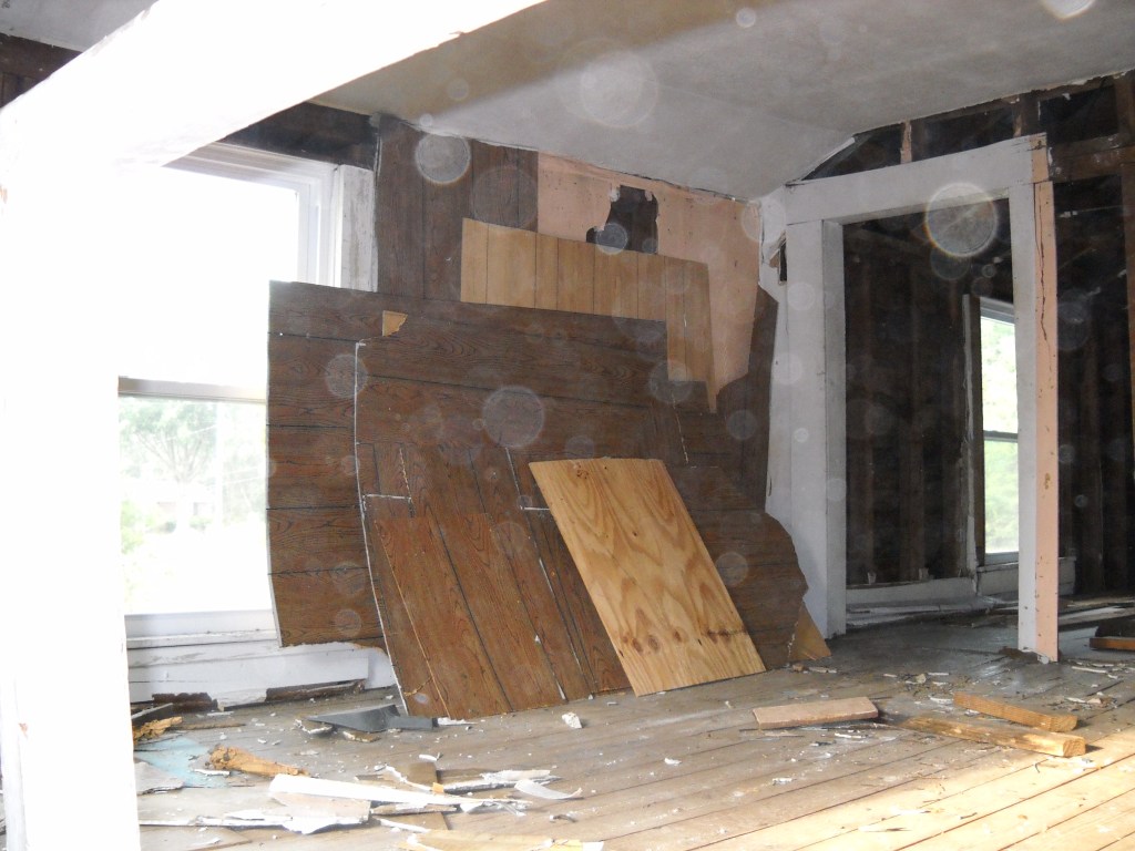 The closet wall was loose; nothing was holding it secure. You can also see the old chimney.