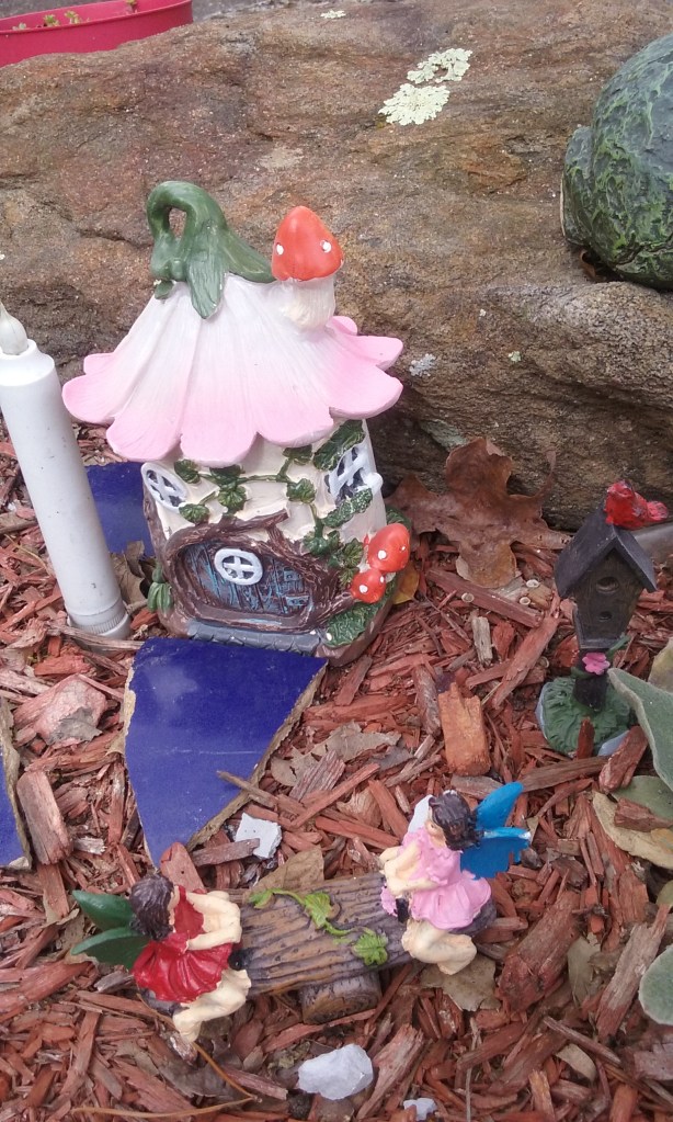 My husband found this half-buried where the pumpkin patch will be located. I placed it in the faerie garden.