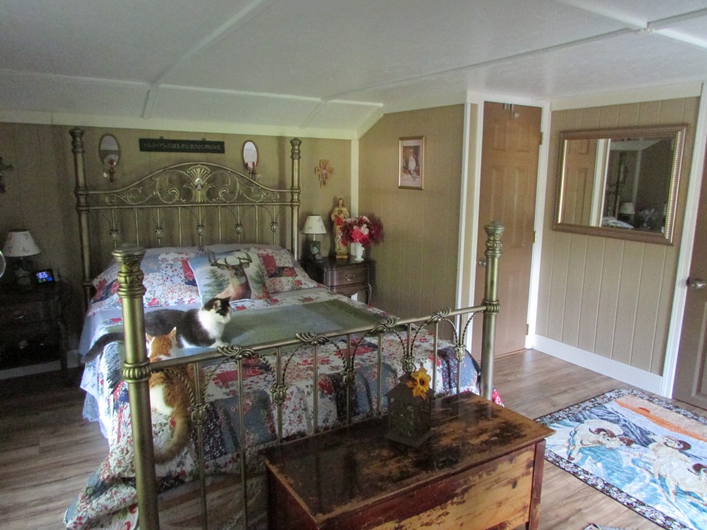 Here you can see the closet doors painted nutmeg, and a few cats.