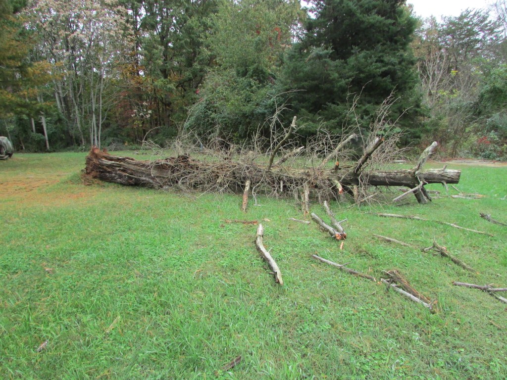 A few pieces scattered around as it fell. The crows will not like this; they used to perch on that tree.
