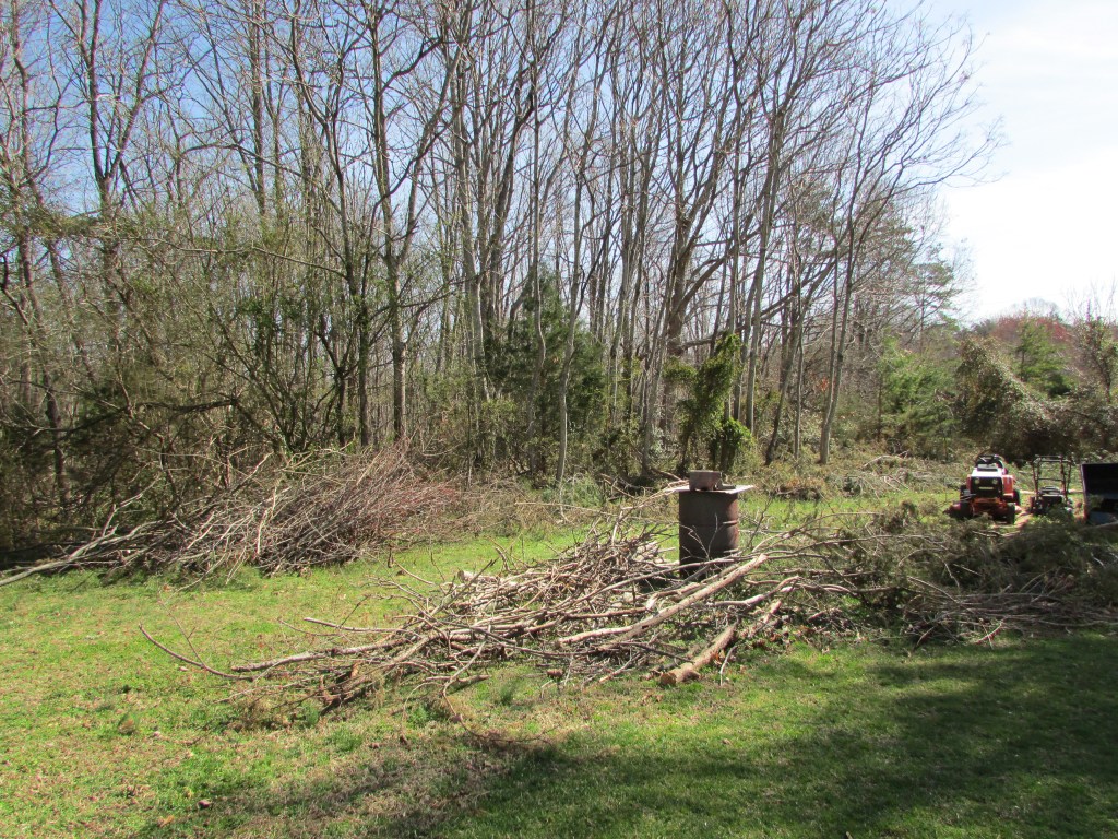 Taking advantage of a few good “warm” days, my husband and I have been slowly working on the mess that the last ice storm made around the property. We have been cutting trees and piling up broken branches and debris in the back so we can dispose of it later on. Once piled up, we realized that it is too big of a job and it will take a long time for us to manage all of it, so we have decided to either rent a brush/garden dumpster or hire someone who does this type of work. An estimation of the cost will be our next step. In the meantime, we were able to clear out most of it, that is, into a huge pile.