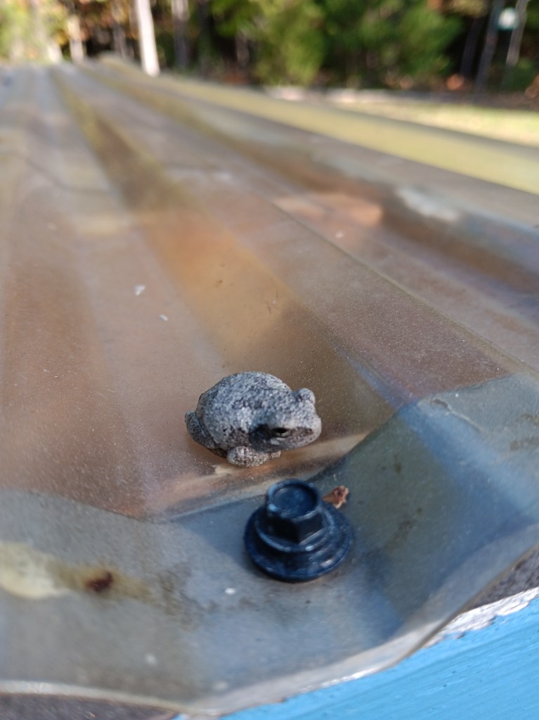 I learned a few things during the process: never give up on a plant just by looks, it was an exercise in patience, butterflies love grape juice, who knew? Expect to deal with many different critters during harvest, and mushy fermented fallen grapes smell like strong wine. It was certainly an interesting process. My sister tasted the grapes, and she said that the taste was similar to Chateau Morrisette wine, which she loves. She got the largest bag of grapes, of course. Here are a few pictures of the little vine that could.