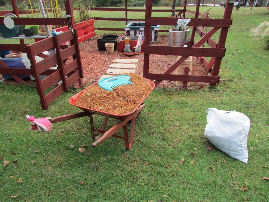 Finally! We have been postponing working on the grape vine project or planting due to some rain. Last weekend we were able to tackle all this. We bought the necessary materials and plants, and now, everything is in place. Last year, deer ate all the grapes because the vine was intertwined on the veggie garden fence and easy to access. We cut and cleaned it up during the winter to see if we could do something that would make the vine a bit less accessible inside the veggie garden. However, the vine started to grow fast again, shooting new growth everywhere, before we could start training it, and the weather did not help. My husband came up with the idea of getting three metal stakes and wire and placing these on the ground inside the veggie garden and making four rows of wire so the vine could grow. It was a quick project and under $50. I don’t know if the deer would be able to reach it or jump the fence; I hope not. This is what it looks like.