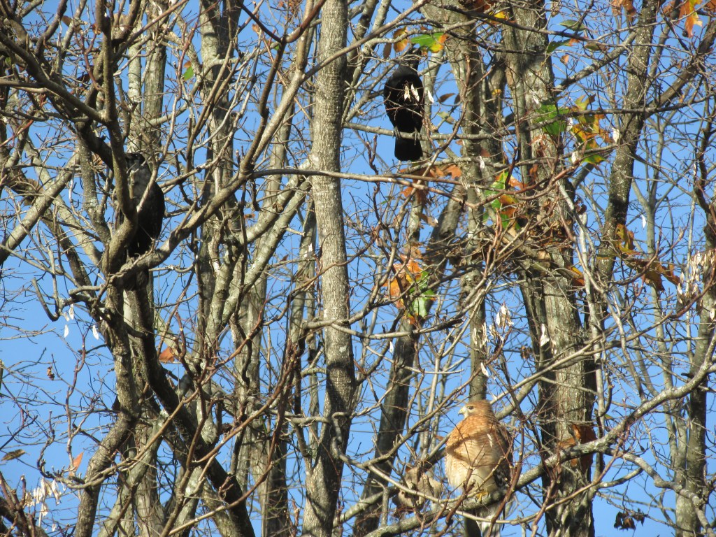 Last year, I shared this picture of a falcon that seemed to be friends with the crows. On occasion, I saw the bird hanging around with the crows, and none of them seemed to be afraid. This year, a falcon has been hanging around with the crows. I don’t think it is the same one; the colors of its plumage seem a bit different. I looked it up and it seems to be a Common Kestrel, a type of falcon, but I am not sure. This seems to be an unusual and unexpected partnership, and none of the crows seem to be afraid of the falcon. Here are the photos I took the other day.