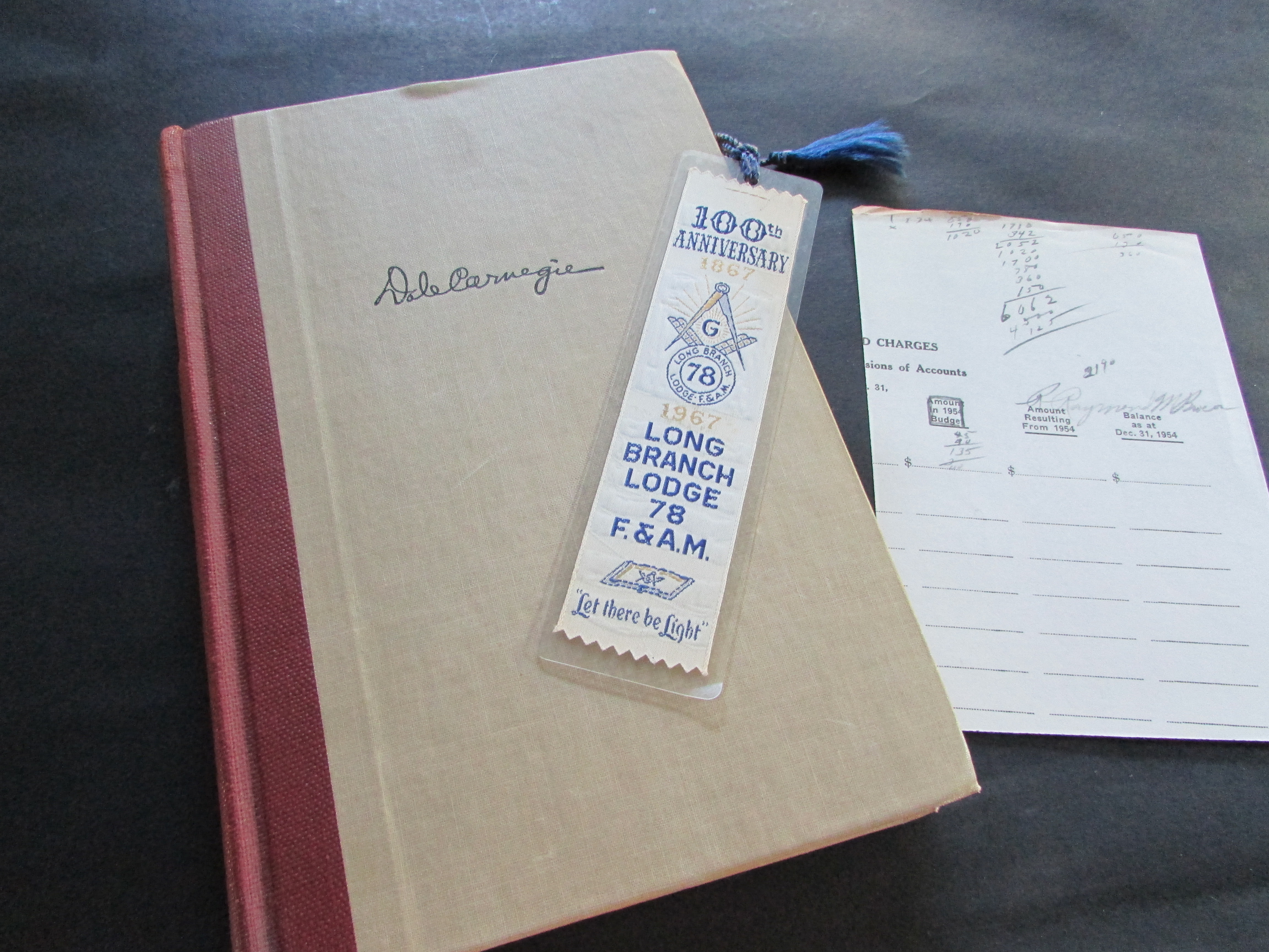 On this particular tome, I found an old piece of scrap paper taken from a budget sheet from 1954. It had some numbers in it, written not in the proper space, but added, what seemed as in a rush. The column Amount in 1954 budget was encased in a square made with pencil markings, and a name was written atop the other two columns. In addition, there was a bookmark from a masonic lodge celebrating 100 year anniversary. The inside had no underlining. What was the story here? Well, the owner was probably a Mason, a business person, maybe an accountant? and he must have scribbled numbers while talking on the phone with the person who’s name was carefully written, and while he was on the phone, he must have doodled the square in pencil, as it seemed to have more than one line, as if this person, went over the square with his pencil several times. Inside the book, there is a large yellow mark made by a paper that must have been placed there for some time. It marked the shape of a large piece of paper and a small one, probably on top of it or attached to it – maybe a receipt (hence why I chose the profession of accountant). This is the story that these clues inspired, but it could be far from the truth; however, I had fun imagining all this. As usual, here are a few pictures.
