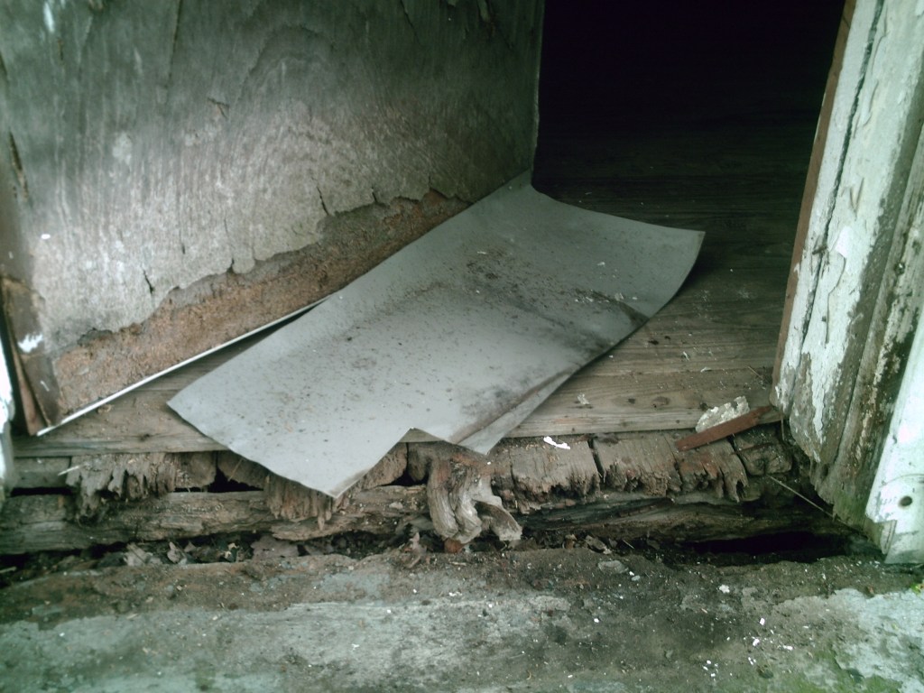 Here you can see the mismatched materials, various layers of wall paper paint, and condition of the walls as well as the floor.